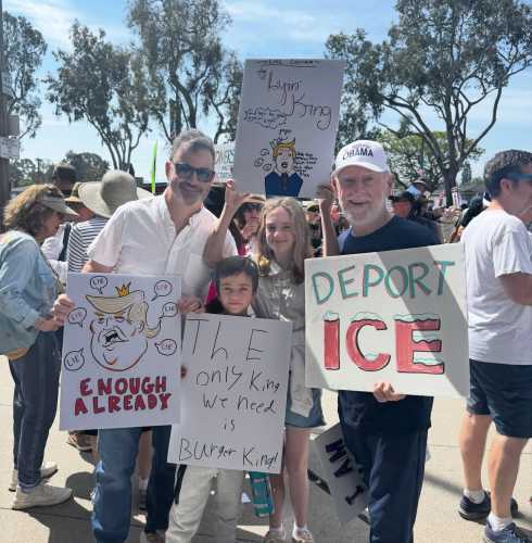 Американський комік і телеведучий Джиммі Кіммел оприлюднив фото з акції протесту у своєму Threads, не зазначивши, де саме він знаходиться.