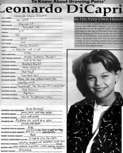 Ведуча пожартувала, що Леонардо Ді Капріо дав найрозгорнутіше інтерв’ю у 1991 році для журналу „Teen Beat“. У мережі вже відшукали його. Інтерв’ю виявилося анкетою, яку актор, ще будучи підлітком, заповнив власноруч. У ній він назвав пасту своєю улюбленою їжею, а регі — улюбленим музичним напрямом.