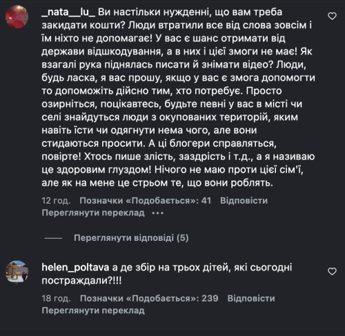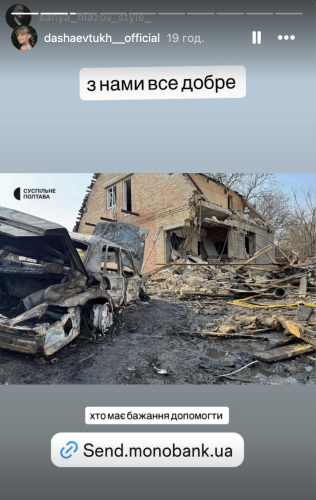 Блогерку Дашу Євтух піддали гострій критиці за ініціативу зі збору коштів на відбудову зруйнованого в Полтаві житла, де мешкали її орендарі. У коментарях під публікацією про влучання підписники Євтух висловили своє невдоволення тим, що вона не згадала про людей, які винаймали у неї квартиру.