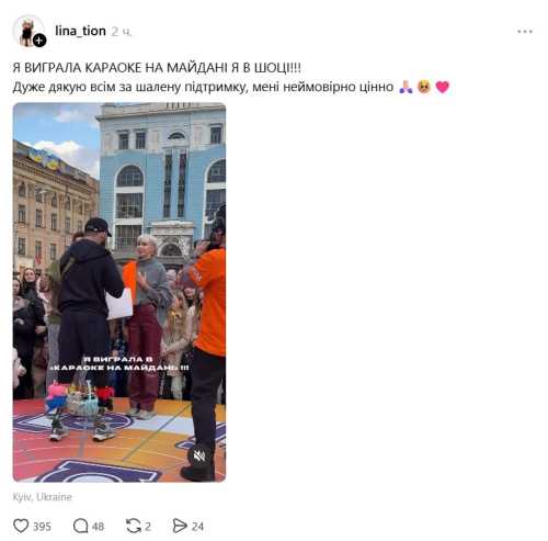 У суботу, 25 квітня, в Києві дали старт зйомкам славнозвісного музичного проєкту “Караоке на майдані”, який відродили з благородною метою – підтримки реабілітаційного центру “Титанові”. Зйомки відбулися на Контрактовій площі, де сотні мешканців міста зібралися подивитися виступи. Це викликало негативну реакцію в соцмережах – чимало людей висловлювали думку, що таке велике зосередження людей становить небезпеку під час війни. Крім того, користувачі висловлювали своє незадоволення організаторам через те, що веселі пісні та танці були недоречними на тлі трагедії в Дніпрі, де внаслідок російських атак загинуло 8 осіб і понад 50 отримали поранення.