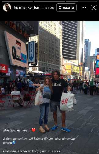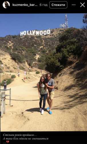 На одному зі знімків Андрій Кузьменко обіймає дочку на фоні напису «Голлівуд» у Каліфорнії. Також Барбара показала фотографію батьків під час мандрівки у США, де Кузьма разом із дружиною Світланою Бабійчук тримають пакунки після покупок.