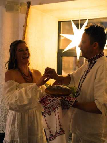 Ресторатор організував пропозицію в національному стилі. Одягнув вишиванку, а каблучку поклав в український хліб. Для нареченої кулінар обрав коштовність від українського бренду Kochut.