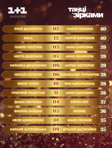 Мінімальні бали (по 35) отримали дві пари – Неля Шовкопляс з Максом Леоновим і Наталія Островська з Віталієм Загоруйком.