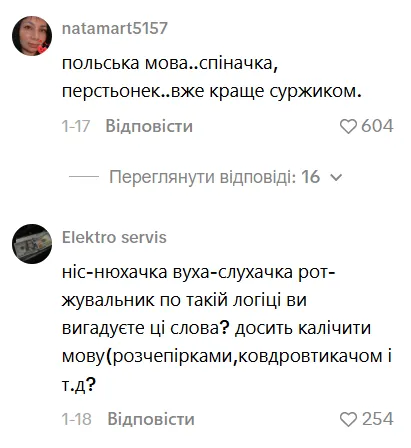 Однак у коментарях зовсім не всі згодні використовувати такі слова в мові. Дехто вважає їх трохи незграбними, а дехто взагалі налаштований неприязно до таких альтернатив, наводячи як приклад вигадані слова, які вигадали з метою кепкувати з української мови.