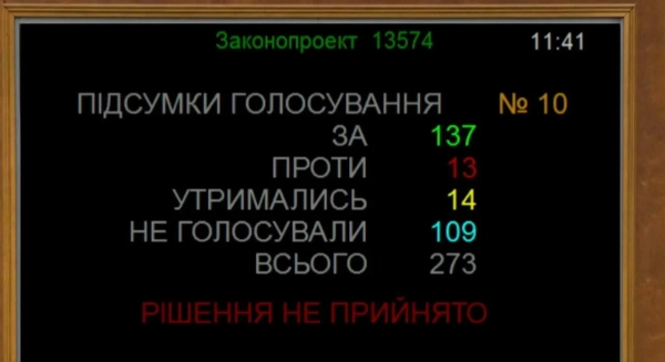 Однак необхідної кількості голосів для її прийняття не було отримано: цю пропозицію підтримали лише 137 народних депутатів. За наявною інформацією, 13 парламентаріїв проголосували проти, а ще 14 – утрималися.