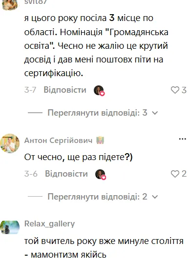 Деякі вчителі також поділилися власним досвідом участі, назвавши його складним, але водночас корисним і мотивуючим.